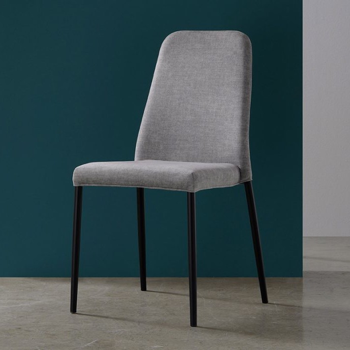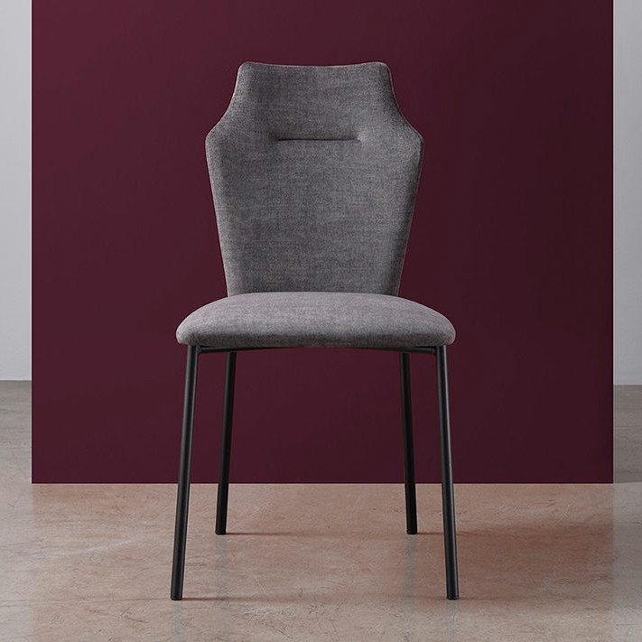 Designová židle Rim zaujme výrazným detailem na zadní straně opěrky zad a čistým, moderním designem. Nohy jsou kovové v několika barevných odstínech, čalounění eko kůží nebo textilem. Barvy dle vzorníku výrobce.