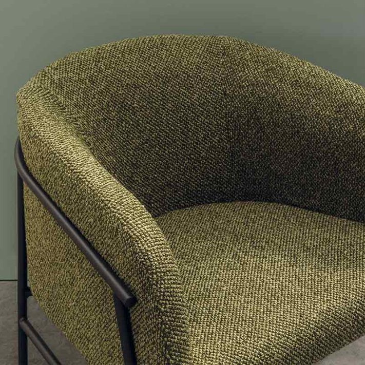 Designové křeslo Ester kombinuje pohodlí s lehkým moderním vzhledem. Pevná konstrukce z lakované oceli zajišťuje stabilitu, zatímco čalounění dodává příjemný pocit při sezení.