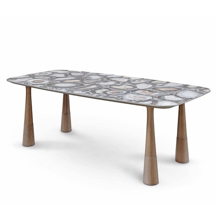 Luxusní jídelní stůl Mirr zaujme výrazným designem, který kombinuje masivní vzhled s jemnými detaily. Kuželové dřevěné nohy a keramická deska dodávají stolu jedinečný, lehce exotický charakter. Mirr se stane nepřehlédnutelným prvkem každého moderního interiéru.