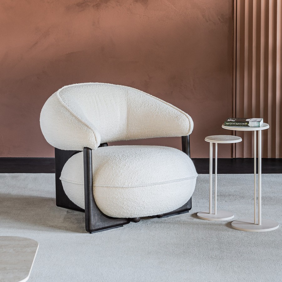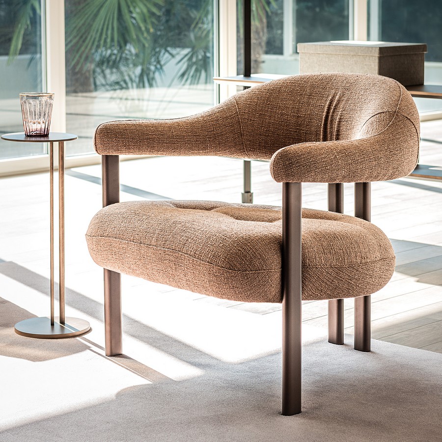 Luxusní křeslo Bonbon zaujme svým měkkým, zaobleným tvarem, který působí přívětivě a elegantně zároveň. Díky nadčasovému designu se skvěle hodí do moderních i klasických interiérů. Komfortní čalounění poskytuje maximální pohodlí při sezení, ať už v obývacím pokoji, relaxační zóně nebo v pracovním koutku.
