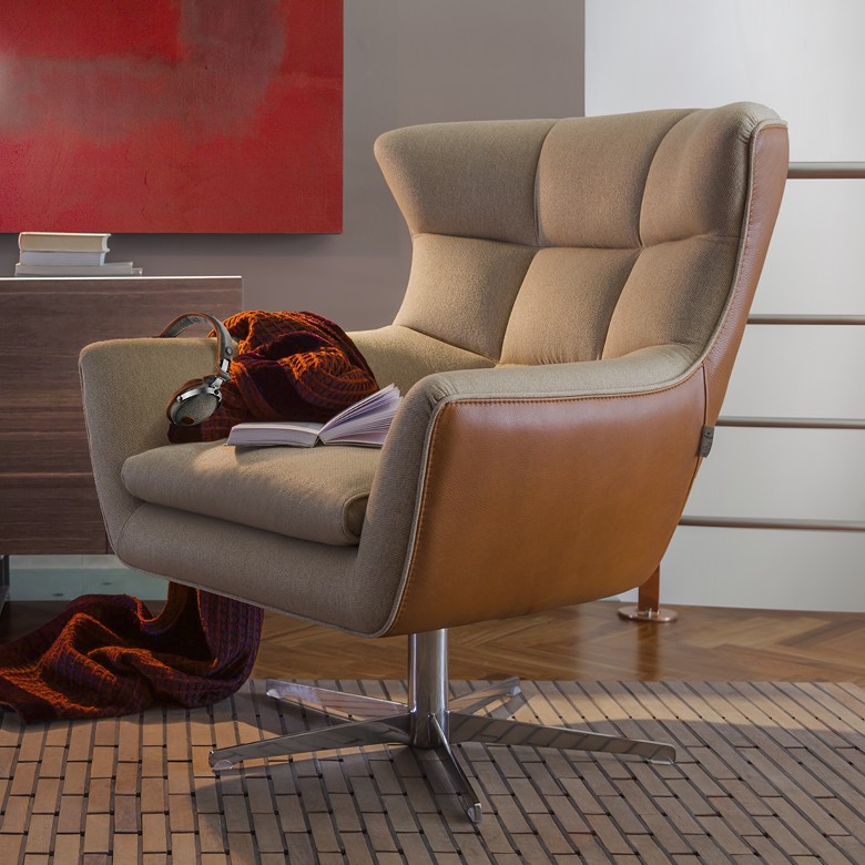 Luxusní křeslo Jacob představuje moderní pojetí klasického stylu „bergère“ z 18. století, typického vysokou opěrkou zad. Elegantní design mistrně kombinuje přírodní kůži a kvalitní tkaniny, čímž vytváří dokonalou rovnováhu mezi tradicí a současným stylem. Křeslo je dostupné s vysokou i nízkou opěrkou zad, v pevné nebo otočné variantě, a lze jej doplnit o ladící taburet pro maximální komfort.