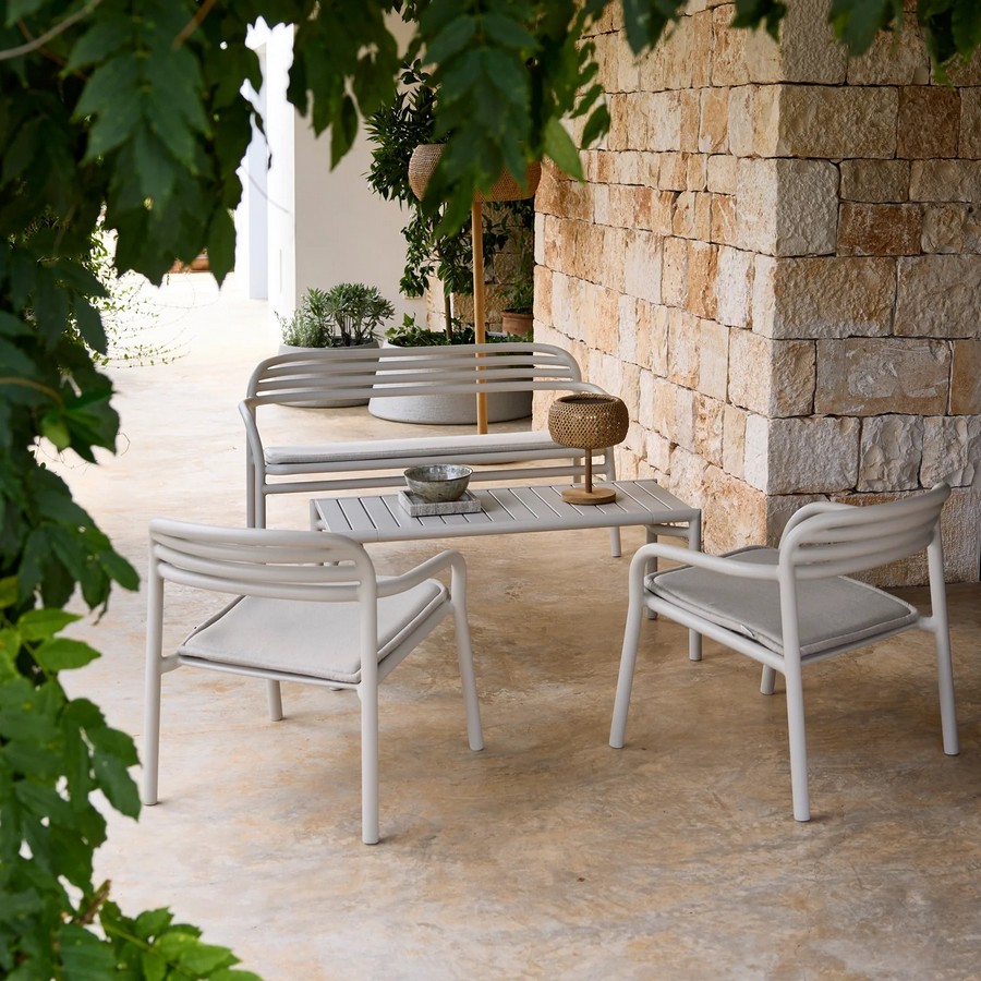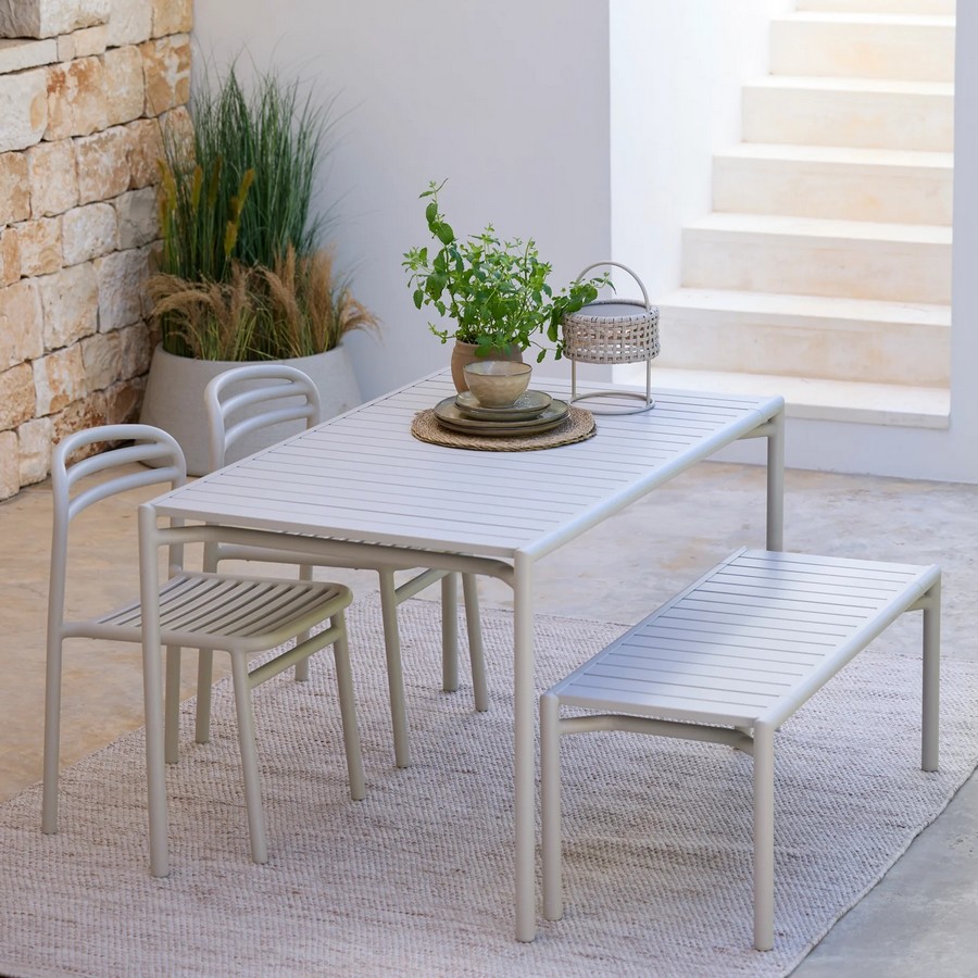 Zahradní jídelní sestava Bliss v elegantním, minimalistickém designu přirozeně doplní každý venkovní prostor. Je vyrobena z lehkého, lakovaného hliníku, který skvěle odolává venkovním podmínkám, povětrnostním vlivům a UV záření. Součástí kolekce jsou stohovatelné židle s nebo bez područek, pohodlná křesla, barové židle, sofa i jídelní stoly. Pomocí volitelného rozšiřovacího modulu lze stůl prodloužit. Kolekce je dostupná v nadčasových barvách a vyniká sofistikovaným, moderním vzhledem.