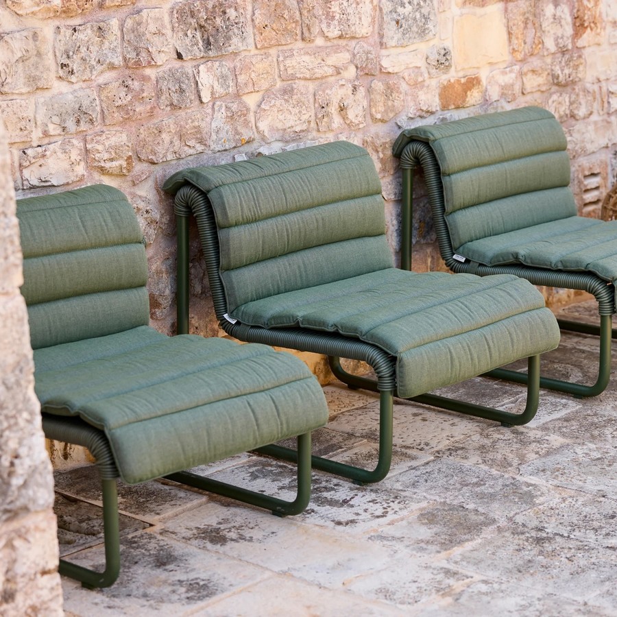 Zahradní kolekce židlí a křesel Al Dente se vyznačuje hravým designem. Charakteristickým prvkem je ručně tkaný sedák. Nábytek je odolný, stabilní a vhodný pro každodenní používání. Židle a křesla jsou navíc stohovatelné, což usnadňuje manipulaci i skladování. Pro ještě větší pohodlí lze doplnit o stylový podsedák Al Dente ve třech barvách.