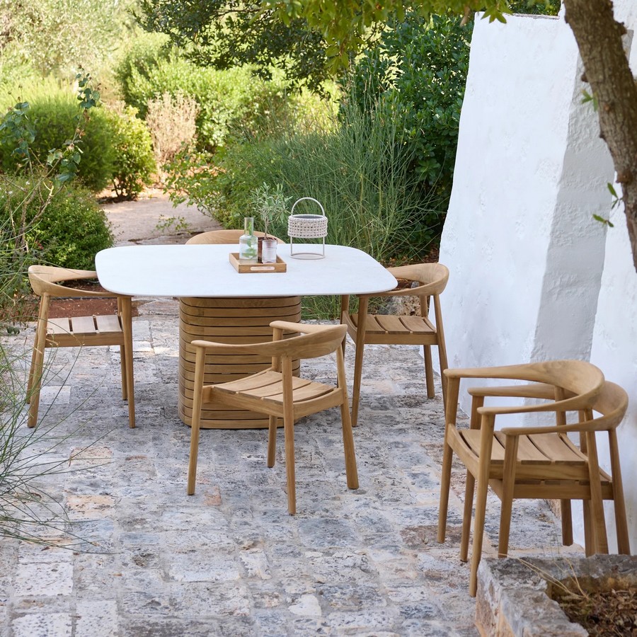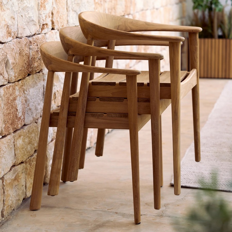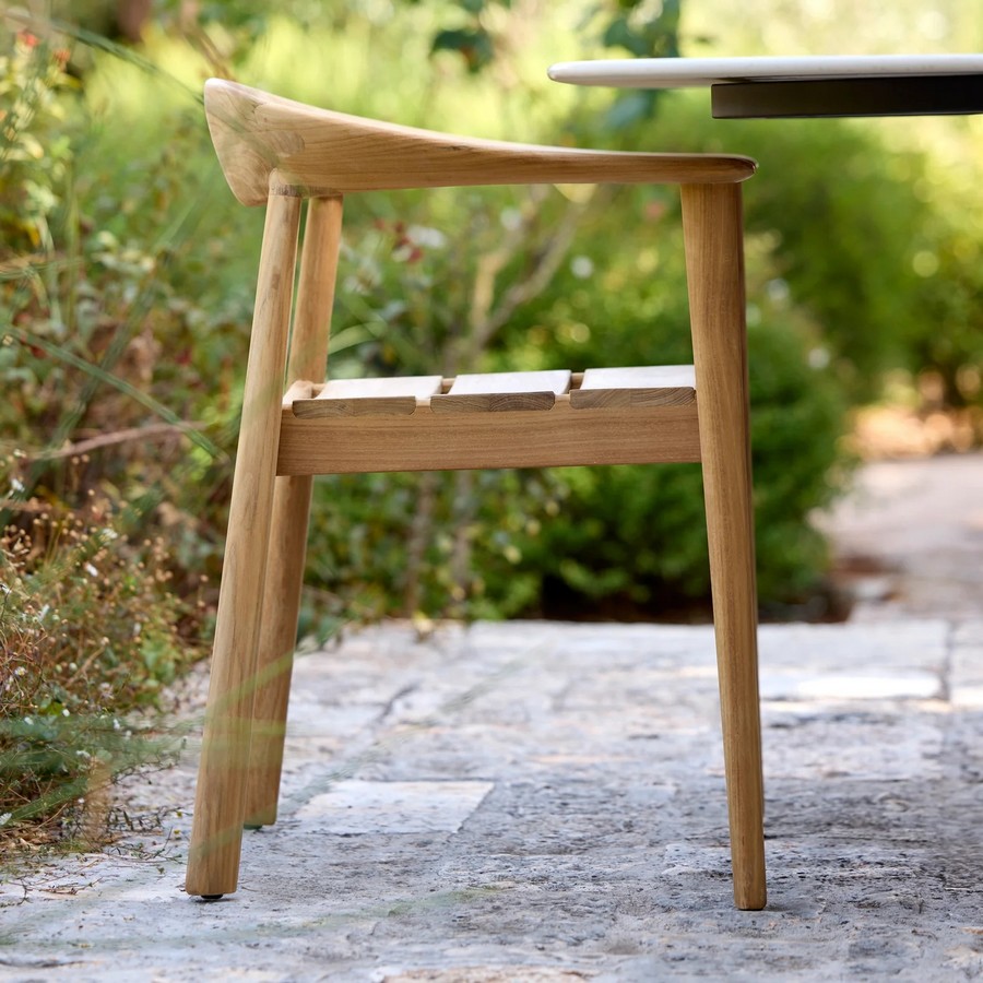 Luxusní židle Majestic spojuje moderní jednoduchost s přirozenou elegancí teaku. Charakteristické nohy, čisté linie a jemně zaoblené područky vytvářejí nadčasový design, který se hodí do interiéru i exteriéru. Certifikovaný teak dodává křeslu hřejivý výraz a vysokou odolnost. Pro ještě větší pohodlí lze křeslo doplnit o podsedák.