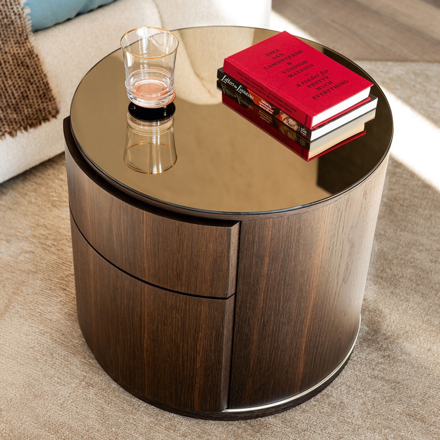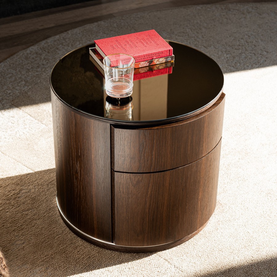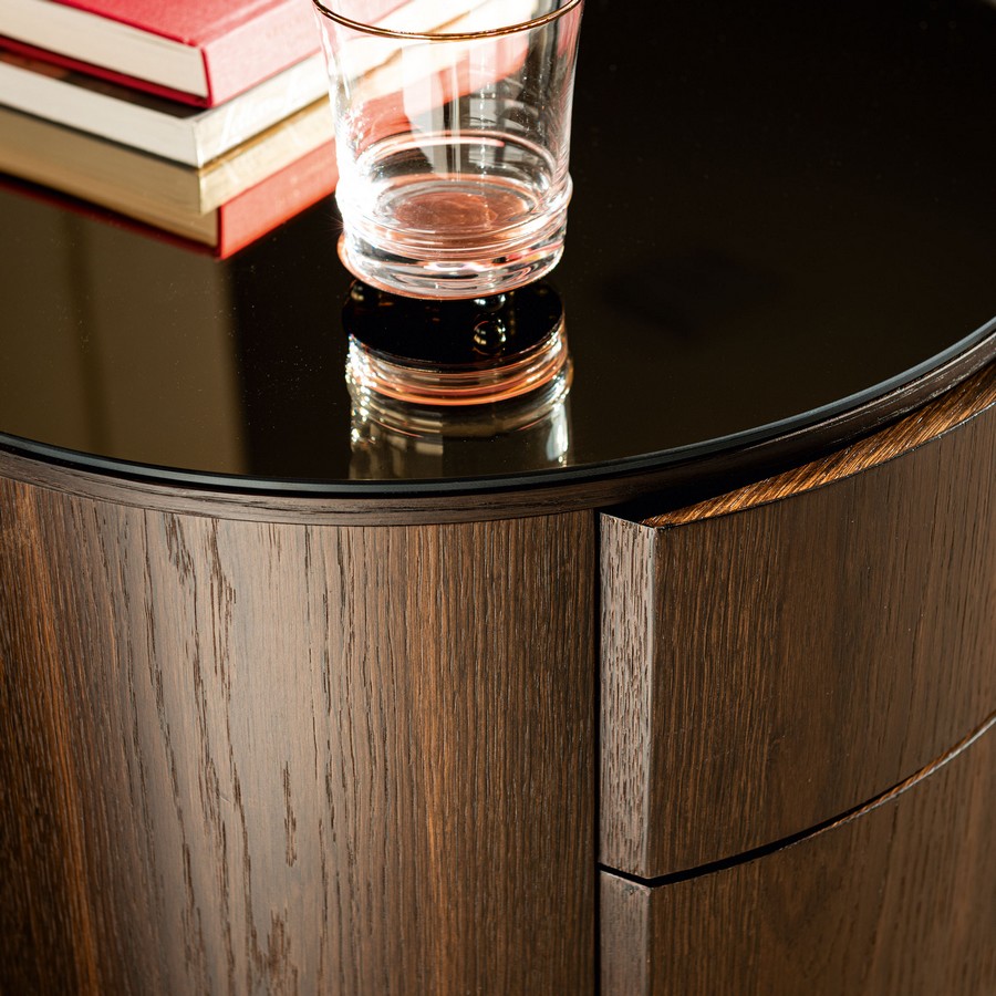 Designový noční stolek Lido se dvěma praktickými zásuvkami je výjimečný nejen svým tvarem, ale především řemeslným zpracováním s důrazem na precizní detaily. Vrchní deska je k dispozici v různých povrchových úpravách.