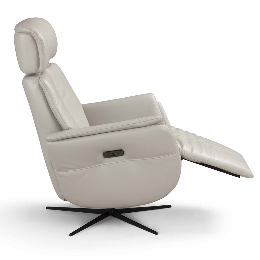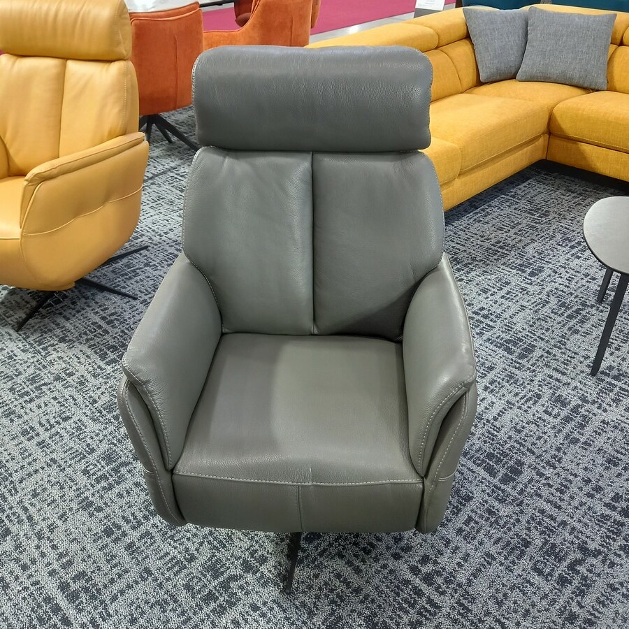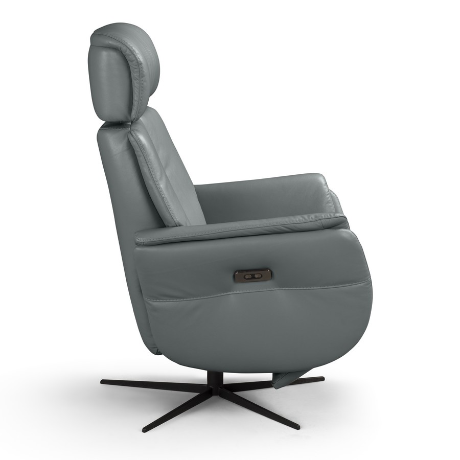 Relaxační křesla Argo jsou moderní polohovací křesla s vysokým komfortem sezení. Díky elektrickému ovládání s integrovanou baterií lze plynule nastavit sklon opěradel i podnožek tak, aby se dokonale přizpůsobila vašim potřebám. Ovládací panel je diskrétně umístěn na boku a umožňuje snadnou manipulaci. Výškově nastavitelná a polohovatelná opěrka hlavy ještě umocní pocit pohodlí a relaxace. Stabilní otočná kovová podnož doplňuje elegantní vzhled. Křesla Argo jsou čalouněna prémiovou kůží v tmavě šedém odstínu. K dodání ihned!