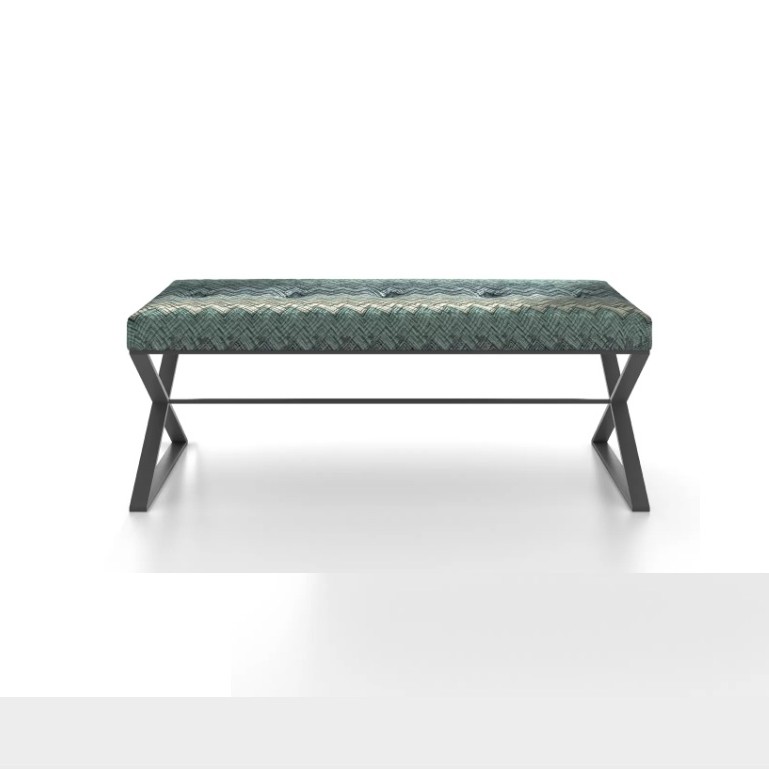 Taburet ICS na ocelové překřížené konstrukci (chrom, matný kartáčovaný nikl, surový kov, bronz), potažený látkou nebo kůží dle vzorníku výrobce.
